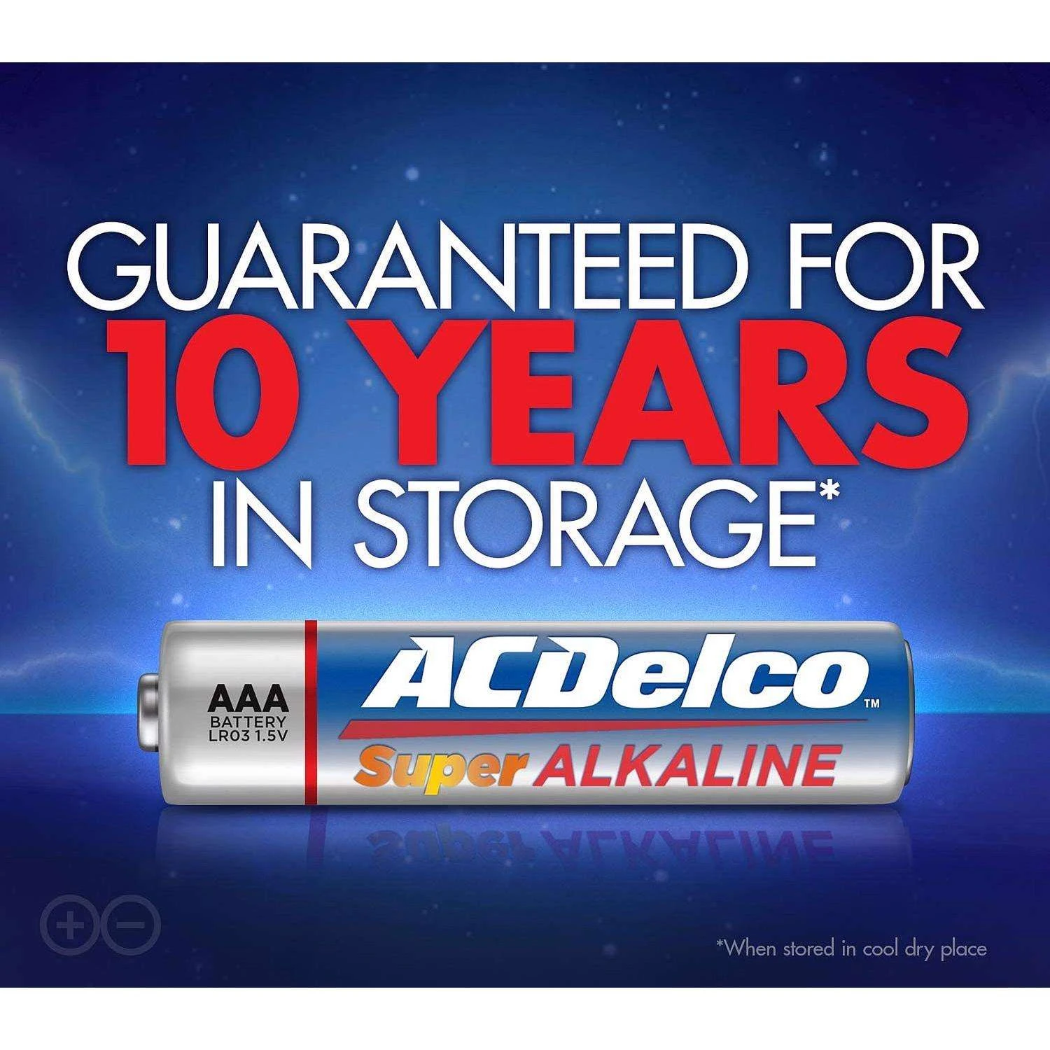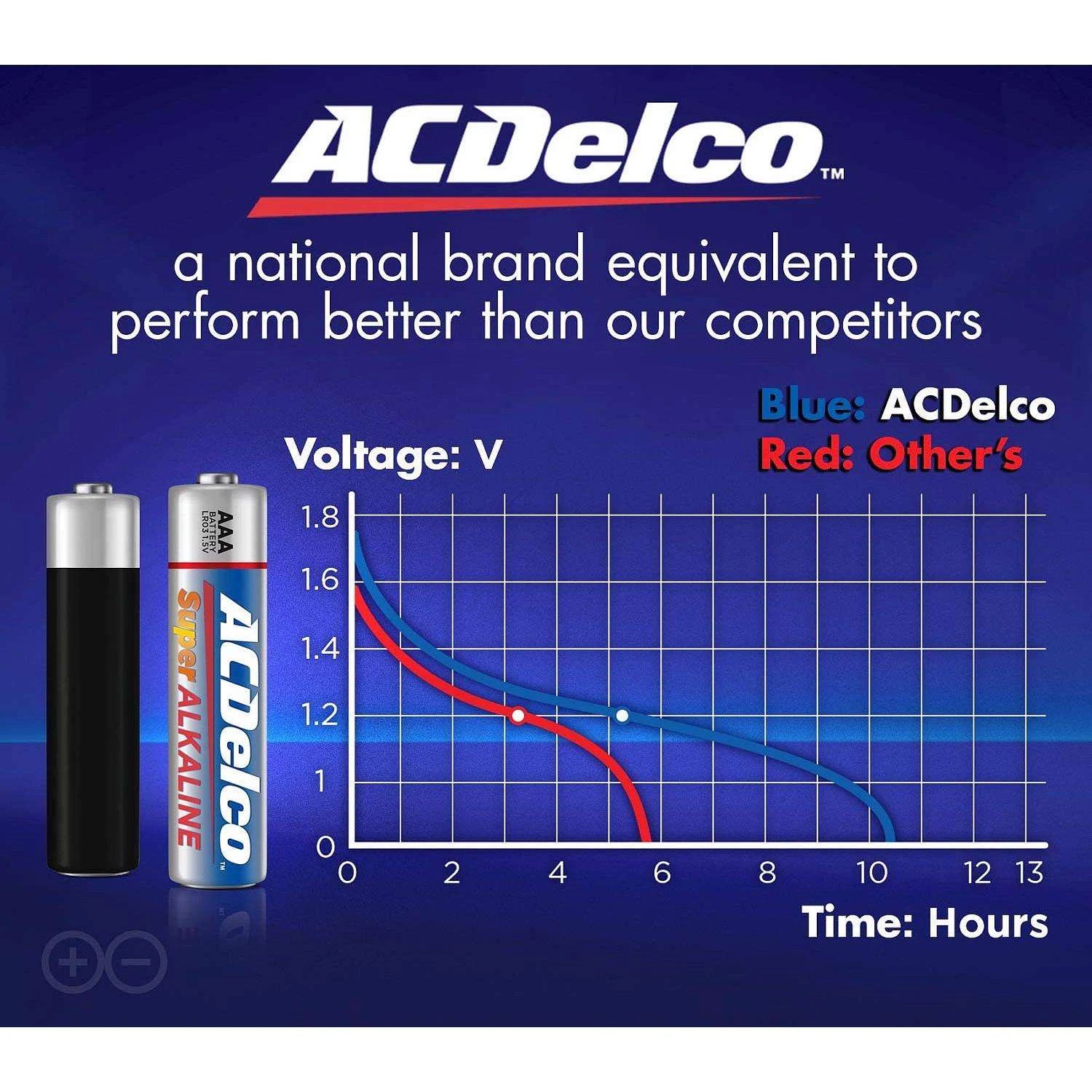Everyone wants a brand they can trust. Dependable and reliable, the ACDelco brand represents quality batteries and products. Super alkaline batteries are equipped with advanced technology you can count on. Performs better than the competition in high-drain and super high-drain devices and they provide consistent discharge performance. Designed for long shelf-life with stainless steel pre-coating that prevents leakage and advanced ingredient formulation that helps maintain power over time. Built to last with an impressive 10-year shelf life Ideal for high-drain digital devices Delivers maximum power to common everyday household devices