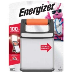 Energizer compact lantern with light Fusion technology takes 4 Energizer MAX AA batteries ( 4 batteries included) or 8 AA for added power and runtime – so you have the power you need, right out of the box. Puts out up to 400 lumens of bright light (on High Mode) and can switch between 2 light mode settings of high and low – or you can dim the light by holding down the power button! The Kickstand folds out for stable, hands-free use and collapses to easily stow away. Energizer compact lantern with light Fusion technology takes 4 Energizer MAX AA batteries ( 4 batteries included) or 8 AA for added power and runtime – so you have the power you need, right out of the box Puts out up to 400 lumens of bright light (on High Mode) and can switch between 2 light mode settings of high and low – or you can dim the light by holding down the power button! Runs up to 100 hours in low mode-great for overnight camping trips, work around the house, hurricane supplies, camping accessories, and survival kits The IPX4 water-resistant construction of this Energizer lantern withstands splashing and can take a beating in any situation. This lantern flashlight provides 360° bright, room-filling light, so you can light up a room or a campsite easily The Kickstand folds out for stable, hands-free use and collapses to easily stow away Energizer light Fusion technology delivers vibrant and uniform area lighting. Perfect for power outages, storms, hurricanes, camping accessories, hiking, survival kits, etc