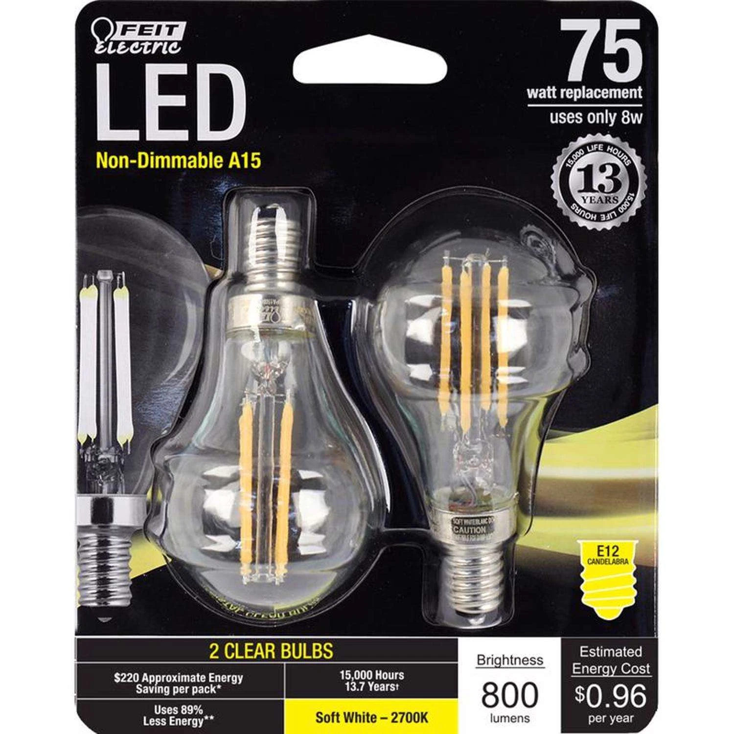 | Search Field | Feit LED A15 E12 (Candelabra) Filament LED Bulb Soft White 75 Watt Equivalence 2 pk Light Bulbs LED Bulbs LED LIGHT BULBS A-LINE BULB – LED FEIT ELECTRIC CO Feit LED 75__rexuom__watts 75__rexuom__watt 2__rexuom__pk 2__rexuom__pack |