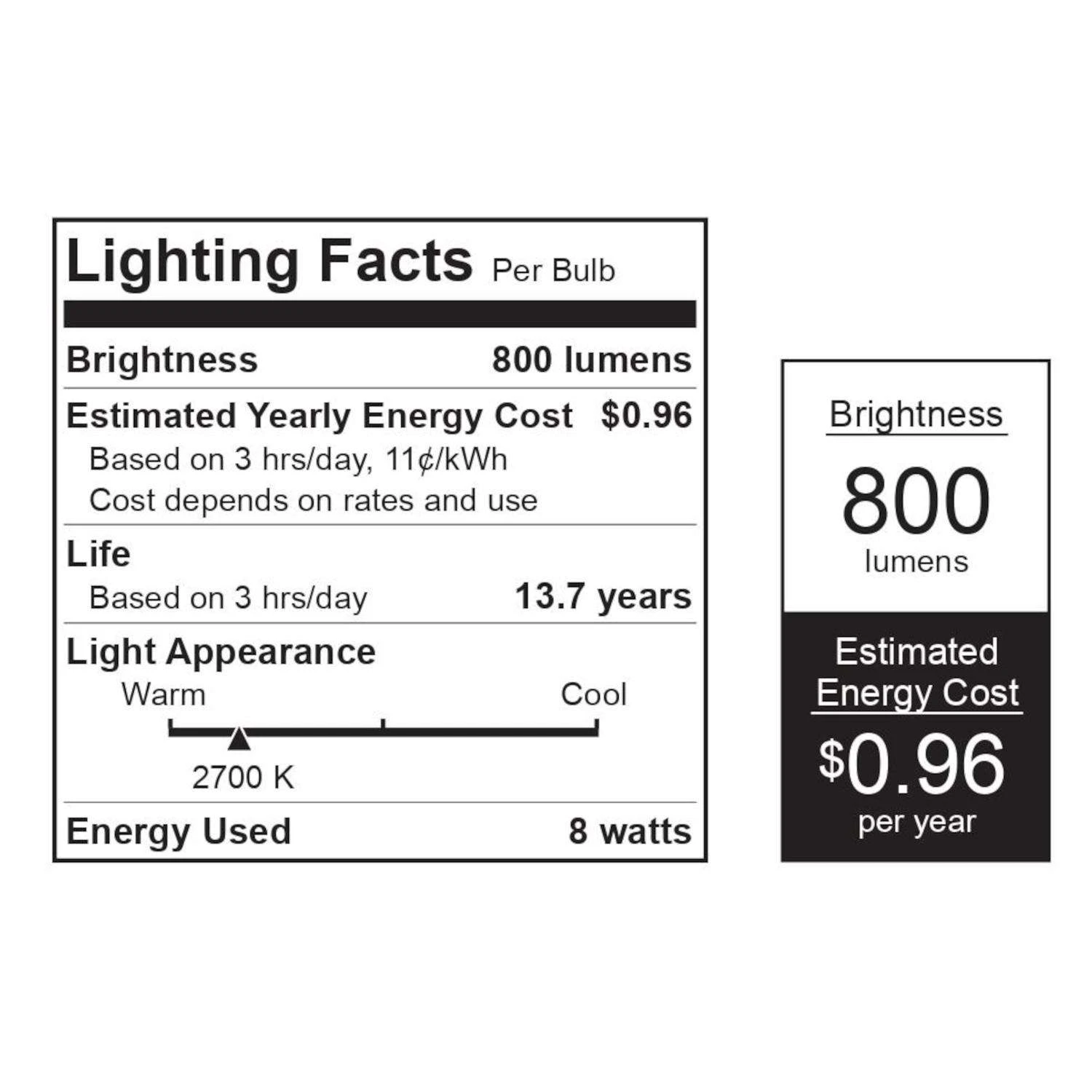| Lumens | 800 lumen |