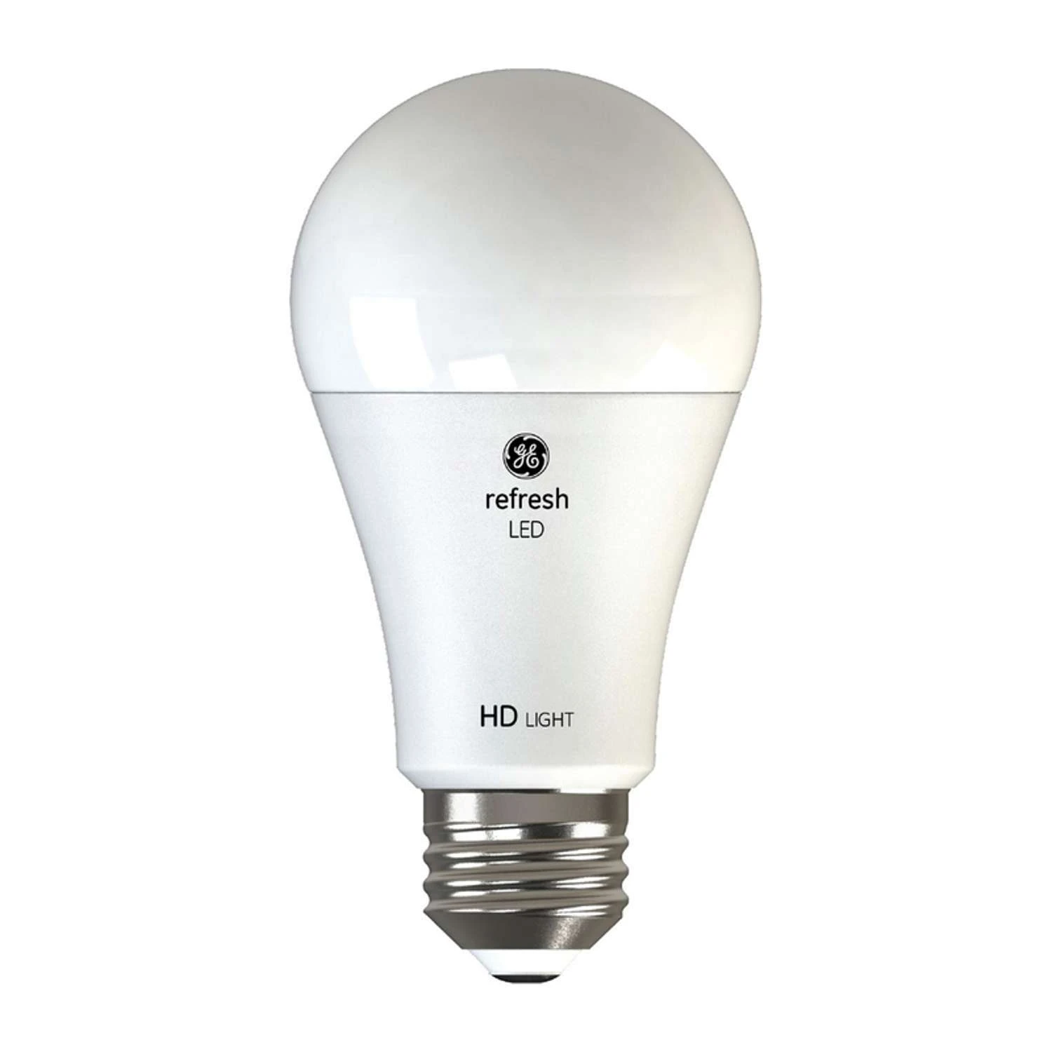 GE High Definition bulbs are an improved, energy-saving LED that enhance the appearance of colors. Experience the difference with bolder colors and enhanced contrast vs. standard GE LED bulbs. Great for use in table lamps, sconces and open fixtures Refresh HD light offers a cool, invigorating light perfect for energizing moments and active spaces Use refresh HD light in playrooms, home offices and laundry rooms