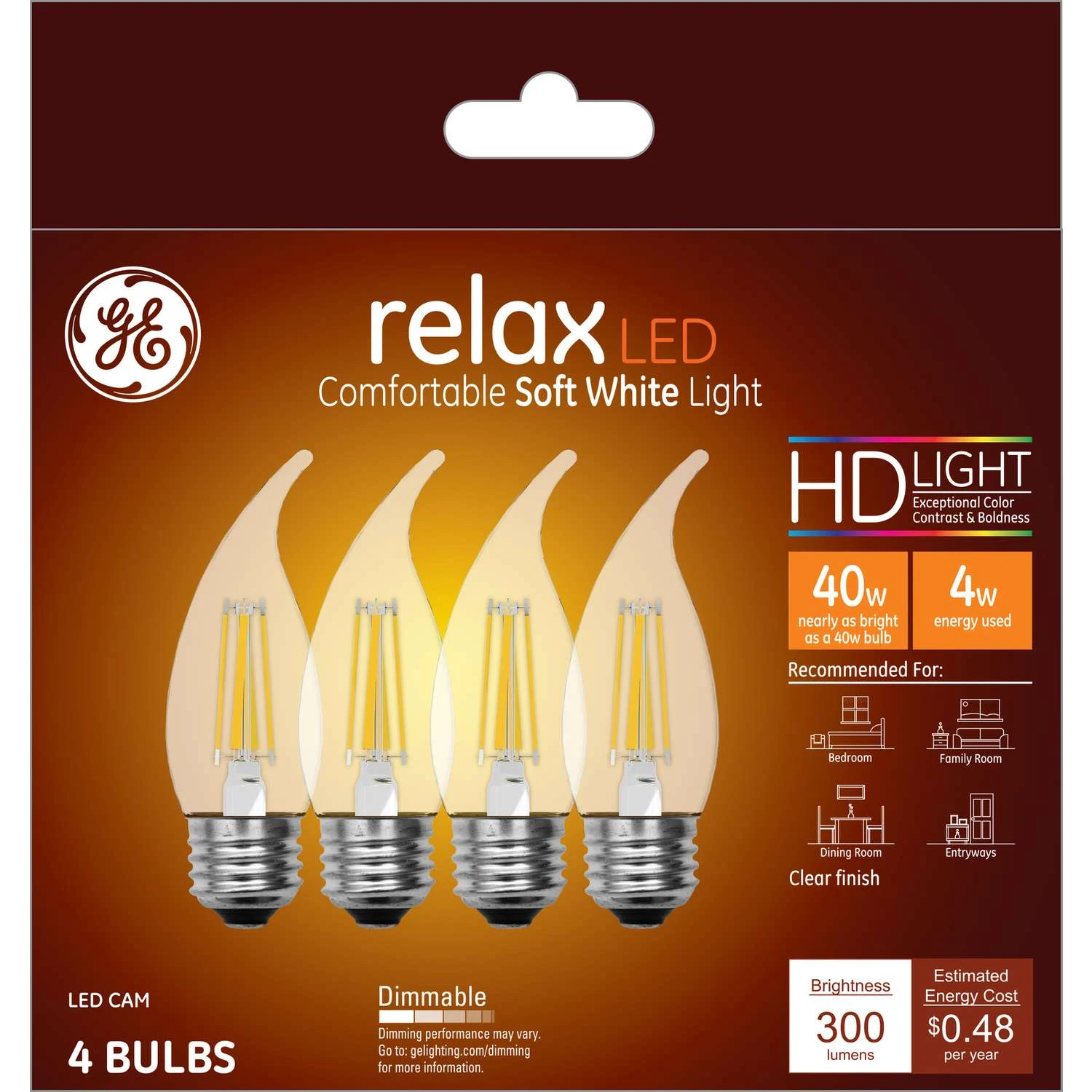 | Search Field | GE Relax CAM E26 (Medium) LED Bulb Soft White 40 Watt Equivalence 4 pk Light Bulbs LED Bulbs LED LIGHT BULBS DECORATIVE – LED GE LIGHTING GE Relax |