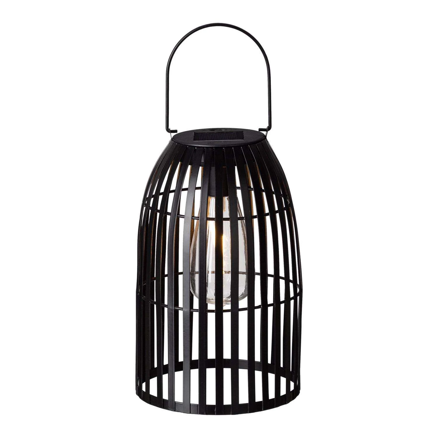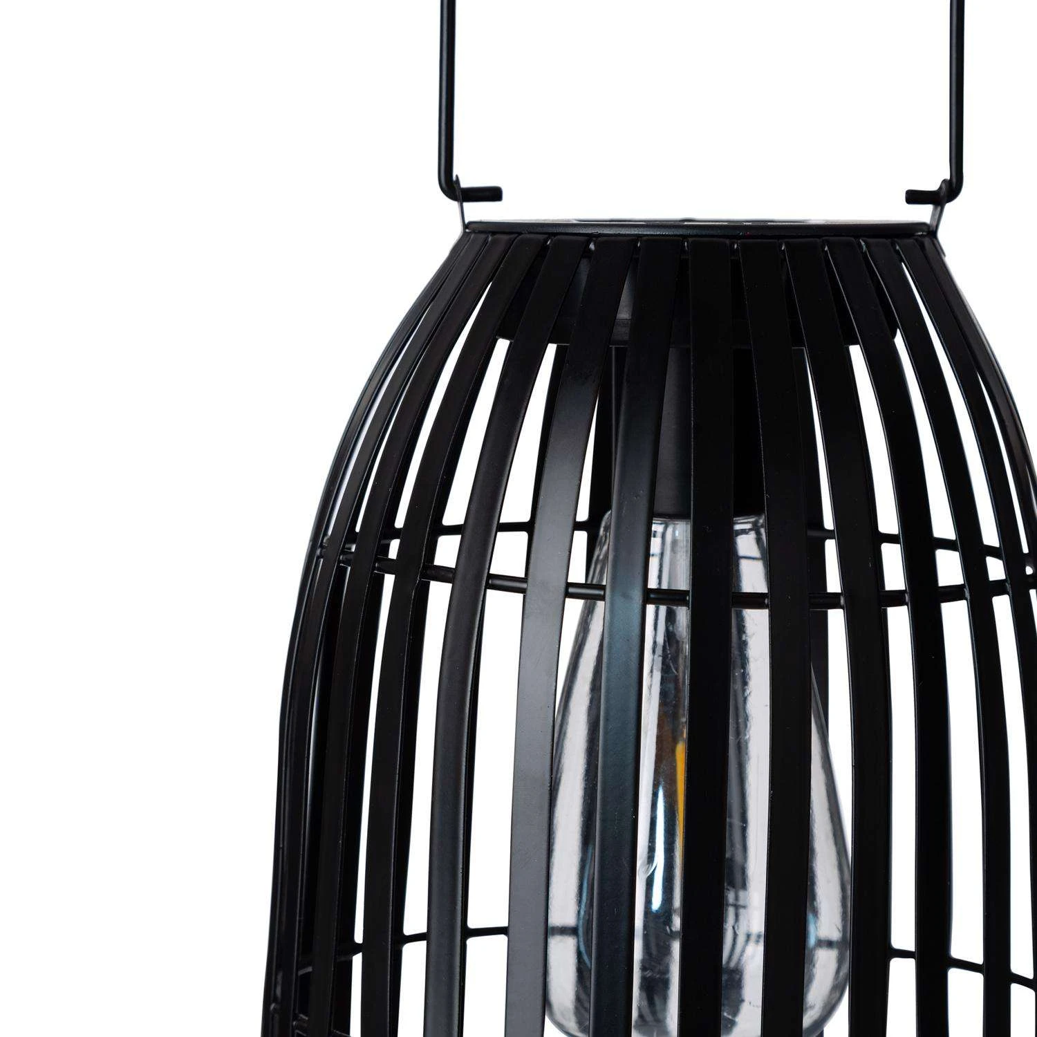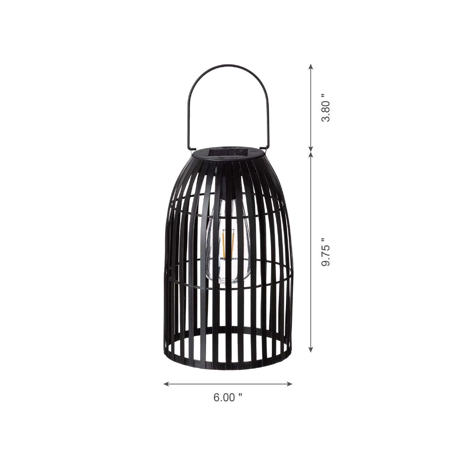 This classic solar lantern with delicate vertical metal stripes creating intriguing graphic shadows, adds artisan beauty and flickering drama to your outdoor space that is sure to convert your garden, patio or yard to be a bright, charming and delightful environment, it will be a great addition for your dining table, cocktail time or yard games. Elegant vertical metal stripes design creating intriguing lights and shadows Classic and pop matte black coated finish Vintage and elegant warm yellow Edison bulb Made of durable metal and plastic Solar powered, automatically charging in the sunlight Automatically turn on at dusk and turn off at dawn Built-in (1) long lasting 1.2V AA 600MAH Ni-MH rechargeable battery When fully charged, the battery can run for 6-8 hours