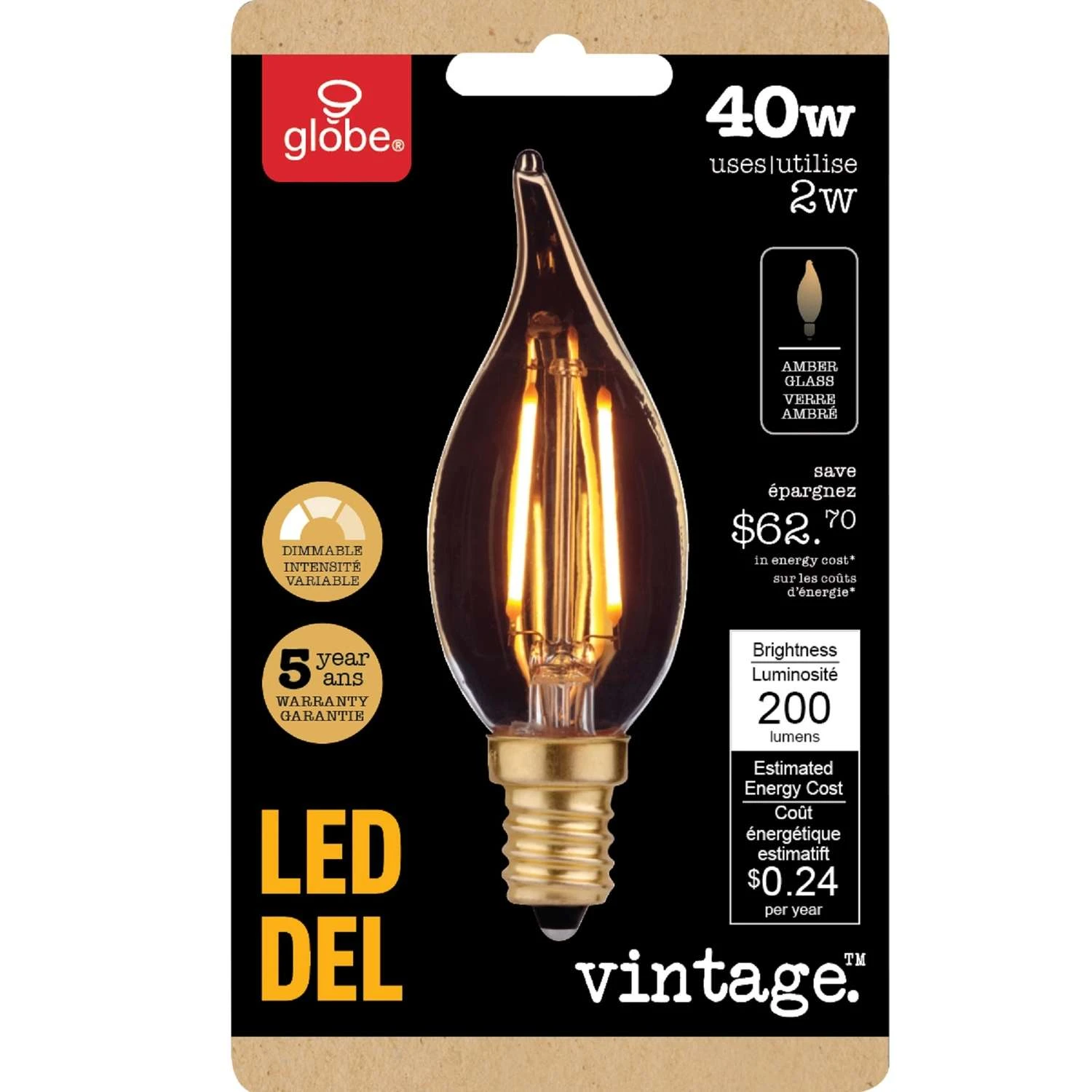 | Search Field | Globe Electric Vintage CA10 E12 (Candelabra) LED Bulb Warm White 40 Watt Equivalence 1 pk Light Bulbs LED Bulbs LED LIGHT BULBS VINTAGE – LED GLOBE ELECTRIC COMPANY USA INC Globe Electric Vintage 40__rexuom__watts 40__rexuom__watt 1__rexuom__pk 1__rexuom__pack |