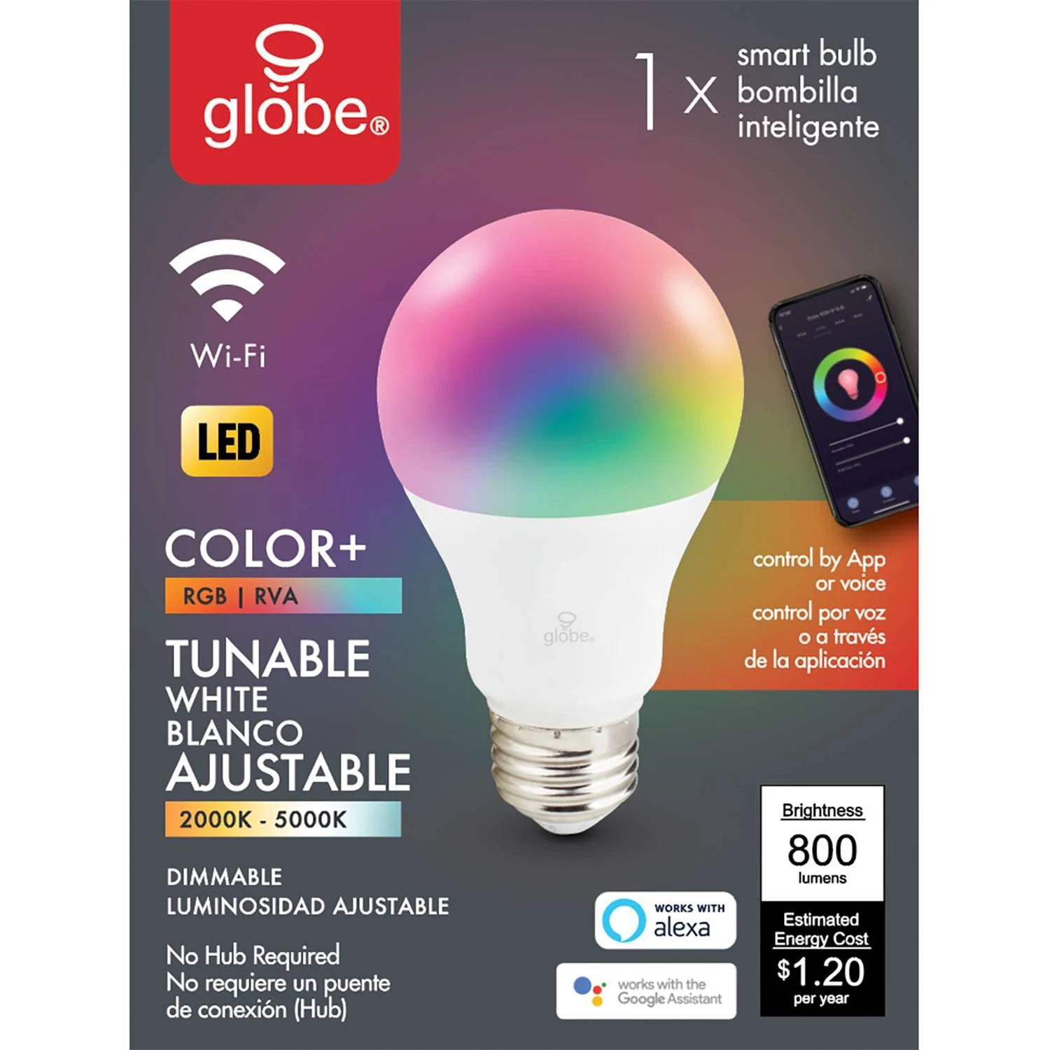 Globe Electric Wi-Fi Smart Home A19 E26 (Medium) LED Bulb Color Changing 60 Watt Equivalence 1 Pk