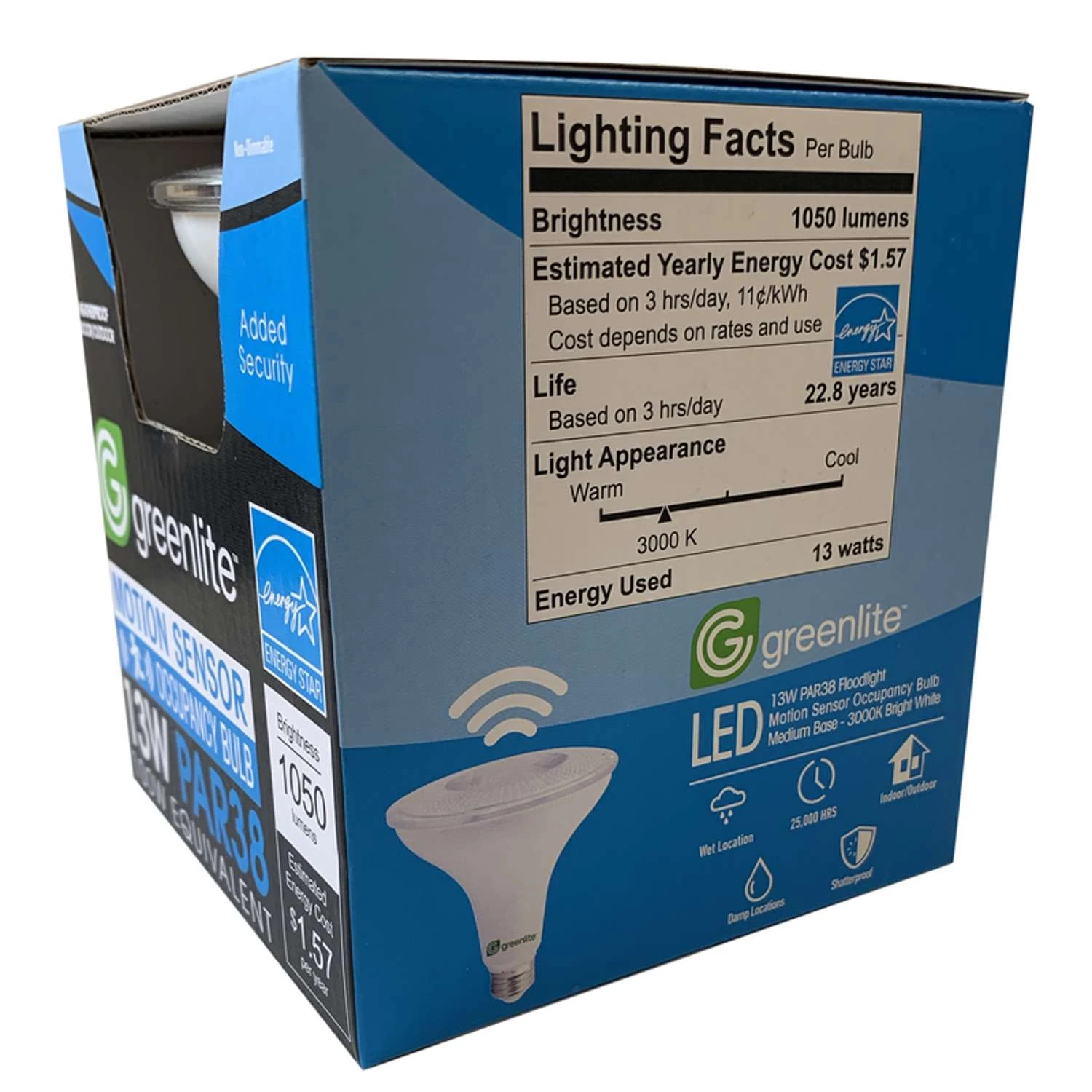 Greenlite PAR38 E26 (Medium) LED Motion Activated Bulb Bright White 100 Watt Equivalence 1 Pk