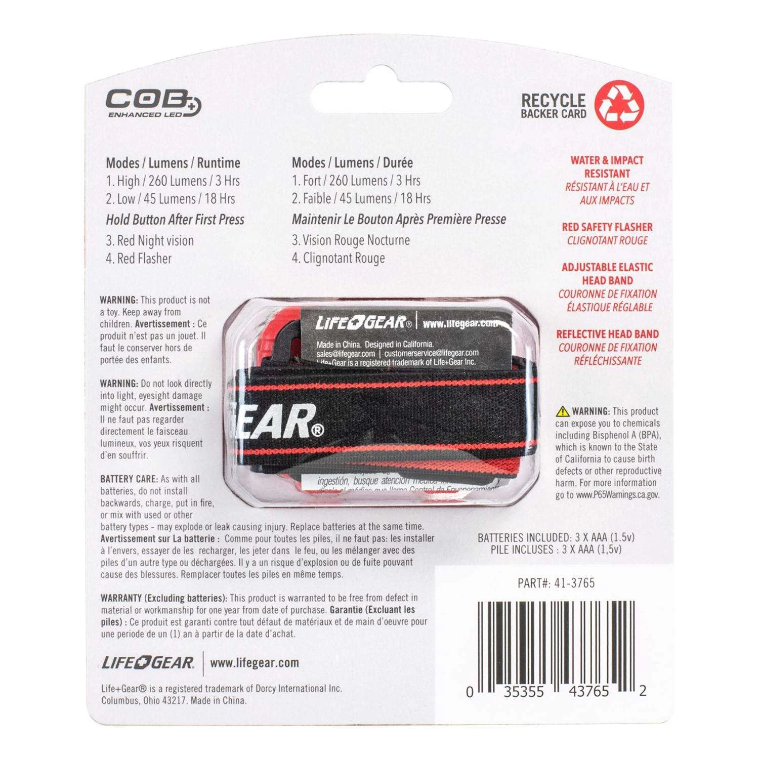 Life+Gear Storm Proof 260 Lm Black/Red LED Head Lamp AAA Battery
