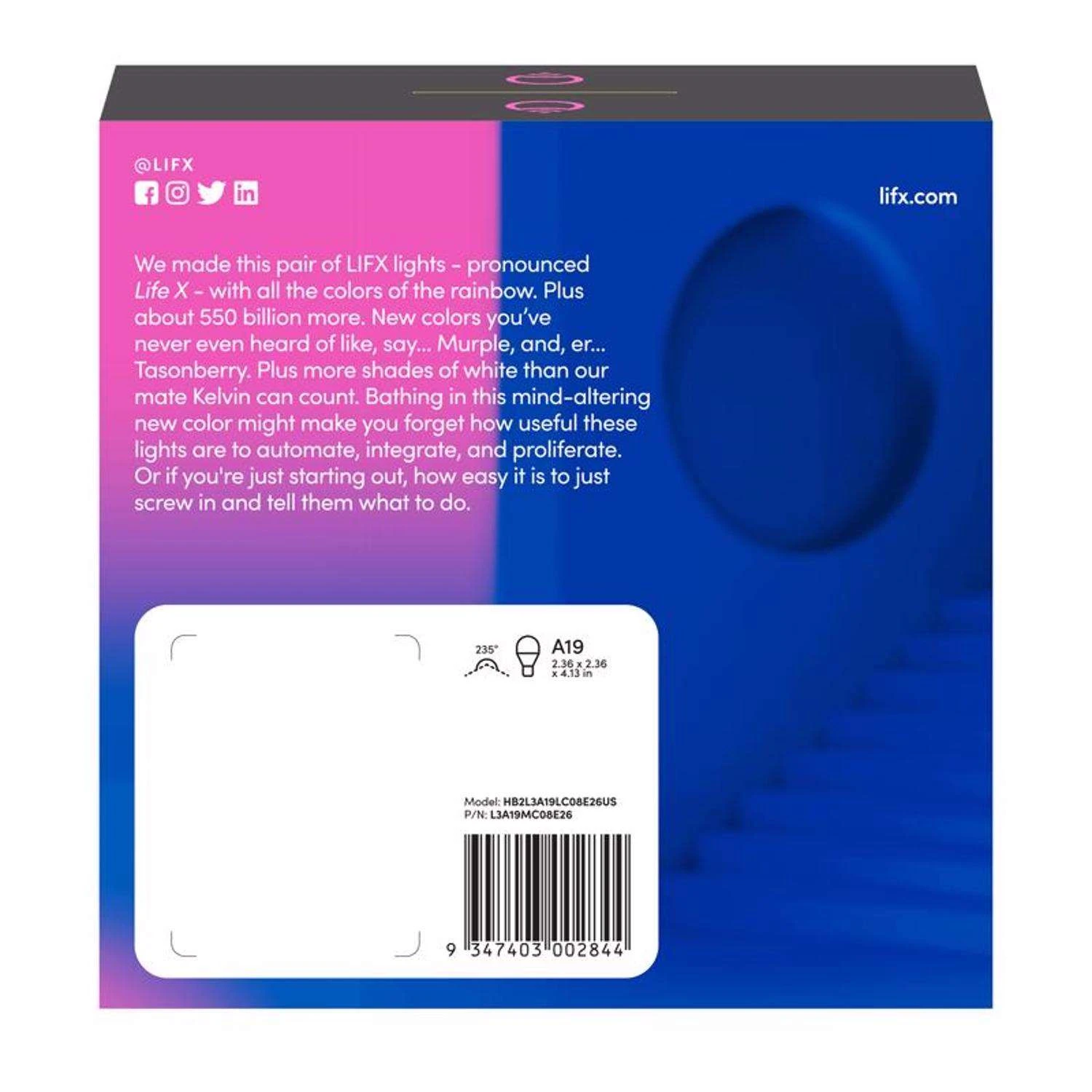 LIFX Smart Home A19 E26 (Medium) Smart-Enabled LED Bulb Color Changing 9 Watt Equivalence 2 Pk