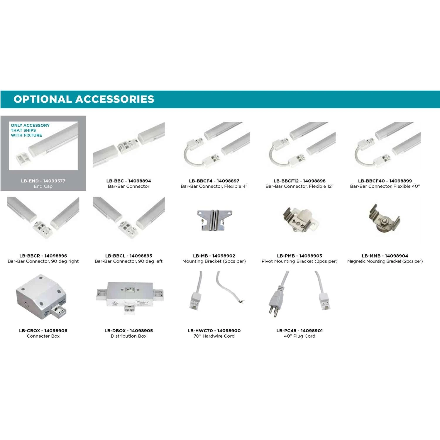 MaxLite LED LiteBars offer endless possibilities for designing functional or decorative lighting. Linkable in continuous runs, LiteBars produce beautiful, even light with superior dimming performance. Ultra-compact and simple to mount, the bars can navigate the tightest corners and illuminate the smallest spaces with ease. Popular applications include under cabinet, cove lighting, accent & indirect lighting, wall washing, display and base cabinet toe kick lighting. Dimmable down to 10%, with forward phase or reverse phase dimmers Patent-pending integrated connector allows LiteBars to be connected for long runs of up to 40 foot 3 mounting options available Standard bracket, Pivot bracket, Magnetic mounting Suitable for damp locations High quality extruded aluminum Certifications energy star, NSF, FCC, RoHS compliant and supports compliance of CEC Title-20 2016