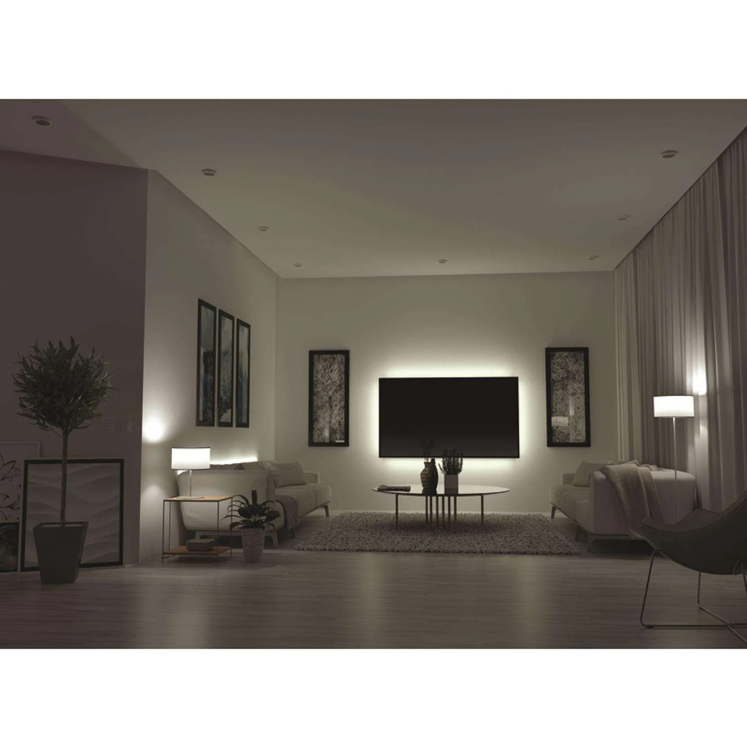 | What's Included | (1) RF Remote, (1) 6.5 ft. Extra Bright Multicolor/White Dimmable 60 LED Strip and (1) USB AC Power Adapters |
