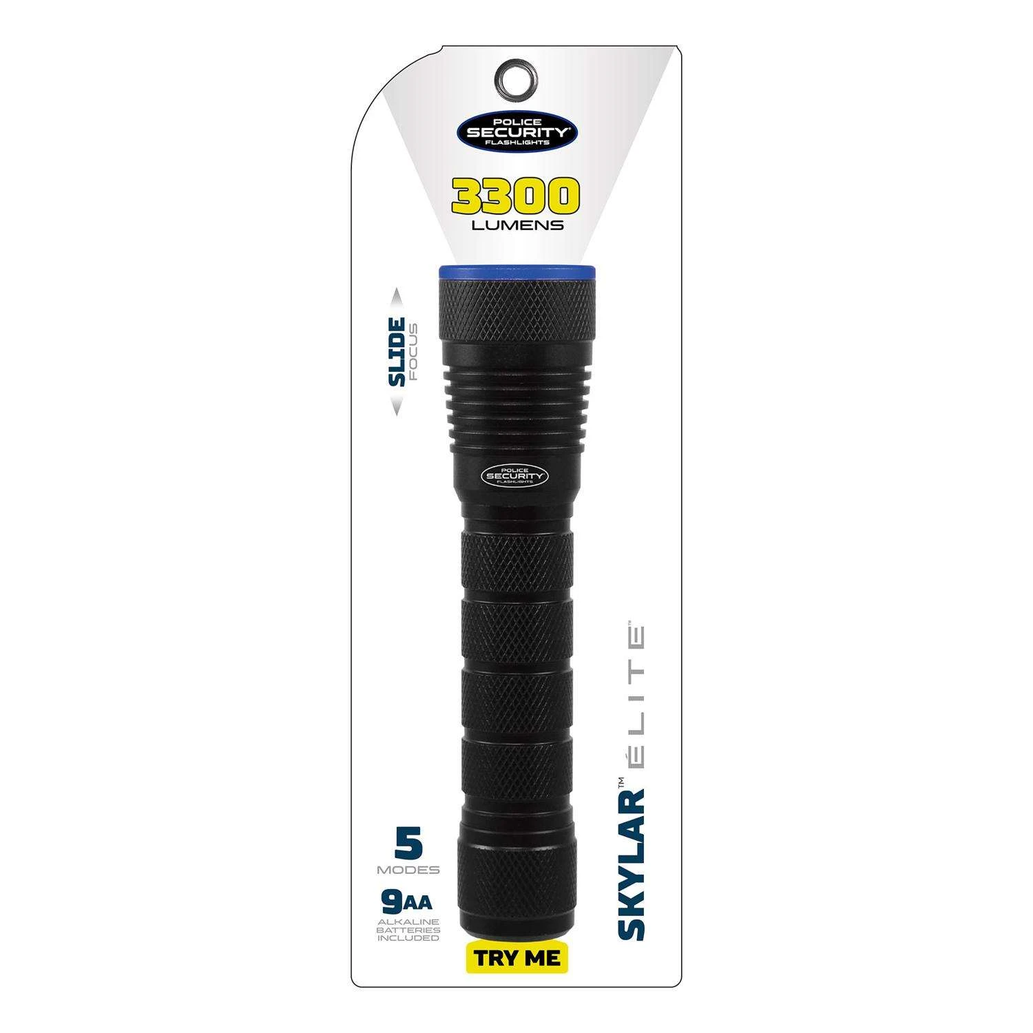 Police Security Skylar 3300 Lm Black LED Flashlight AA Battery
