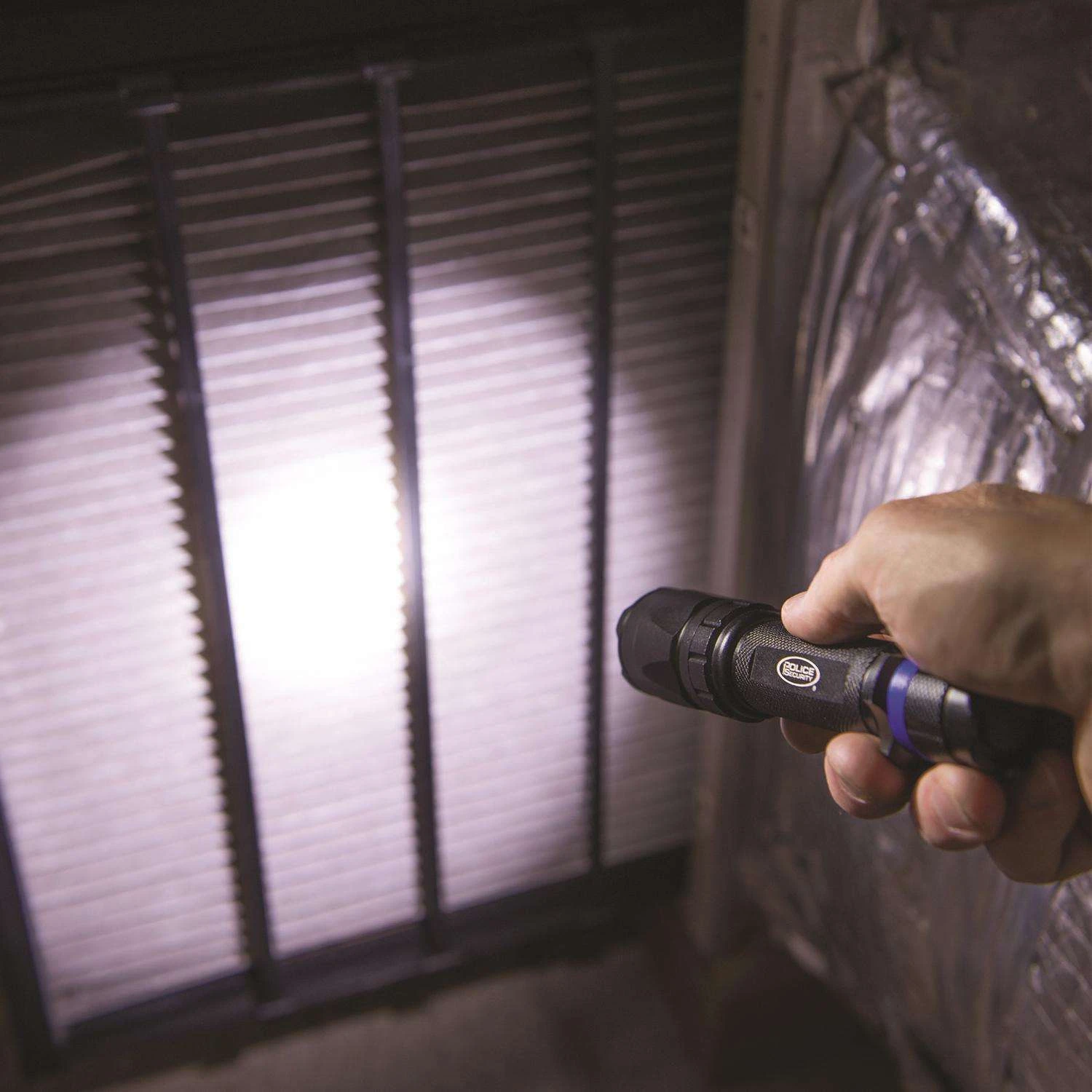 Bring it, Mother Nature. Chase adventure in any light with a tactical flashlight that’s ready for all the outdoor action you can dish out. The Trac Tact 1000 Lumen with 395 NM Flashlight turns pitch black into daylight and takes architectural-grade aluminum to a whole new level. Impact, water, and weather-resistant, it also features roll stop and Soft Switch™ mode-change technology. 6AA batteries power the internal LED chip, which puts out 1000 lumens for up to 5 hours in 5 different modes, including red night vision and blood-tracking 395 nM UV light. Perfect for hunters, campers, climbers, and hikers. The brightest of the bright See up close or far away Survives drops to 1 meter Rated IPX7. Can be submerged to 1 meter for 30 minutes Defaults to High when off for 15 seconds Detect fluid leaks, blood-tracking One flashlight, multiple settings. Vary by flashlight