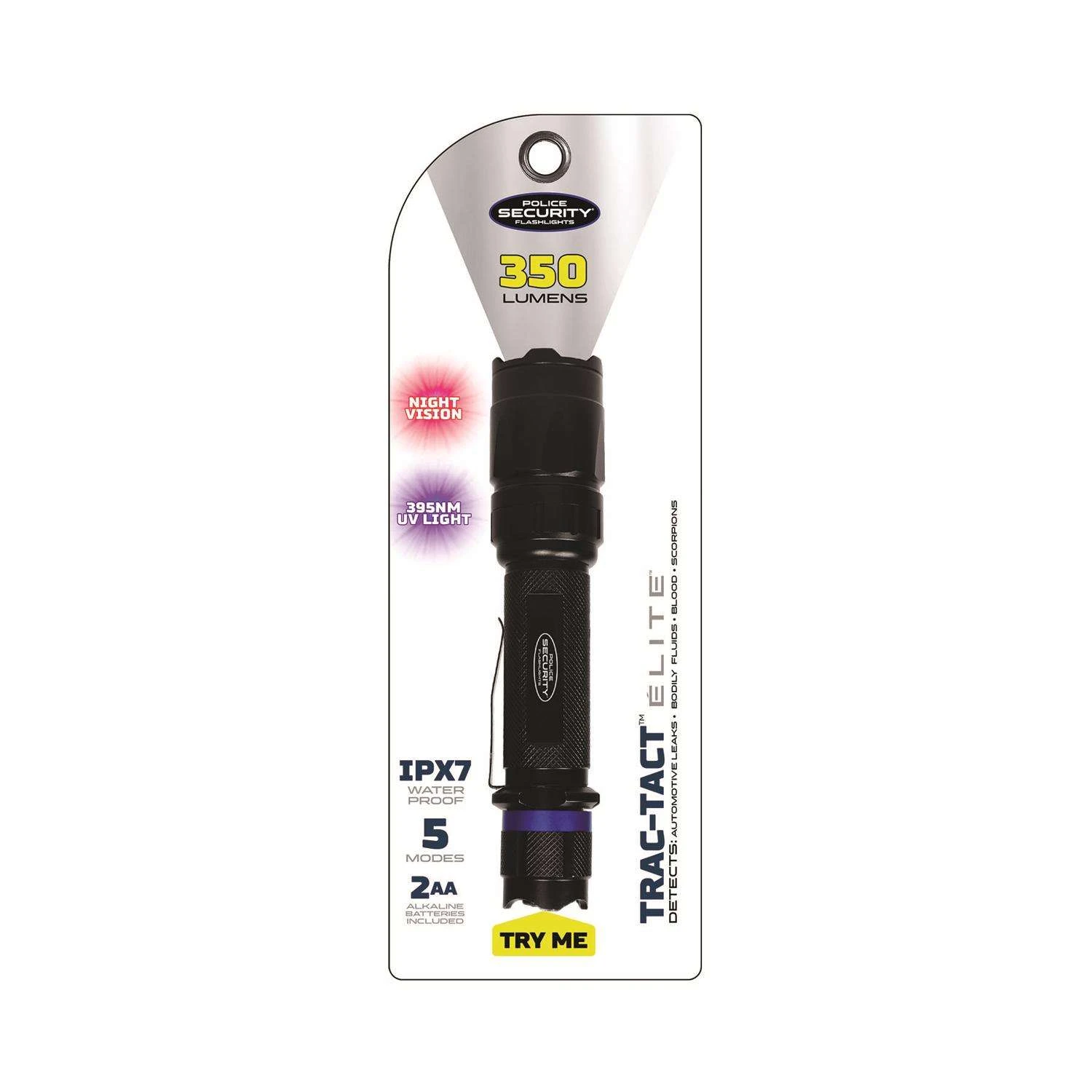 Police Security Trac-Tact 350 Lm Black LED Flashlight AA Battery