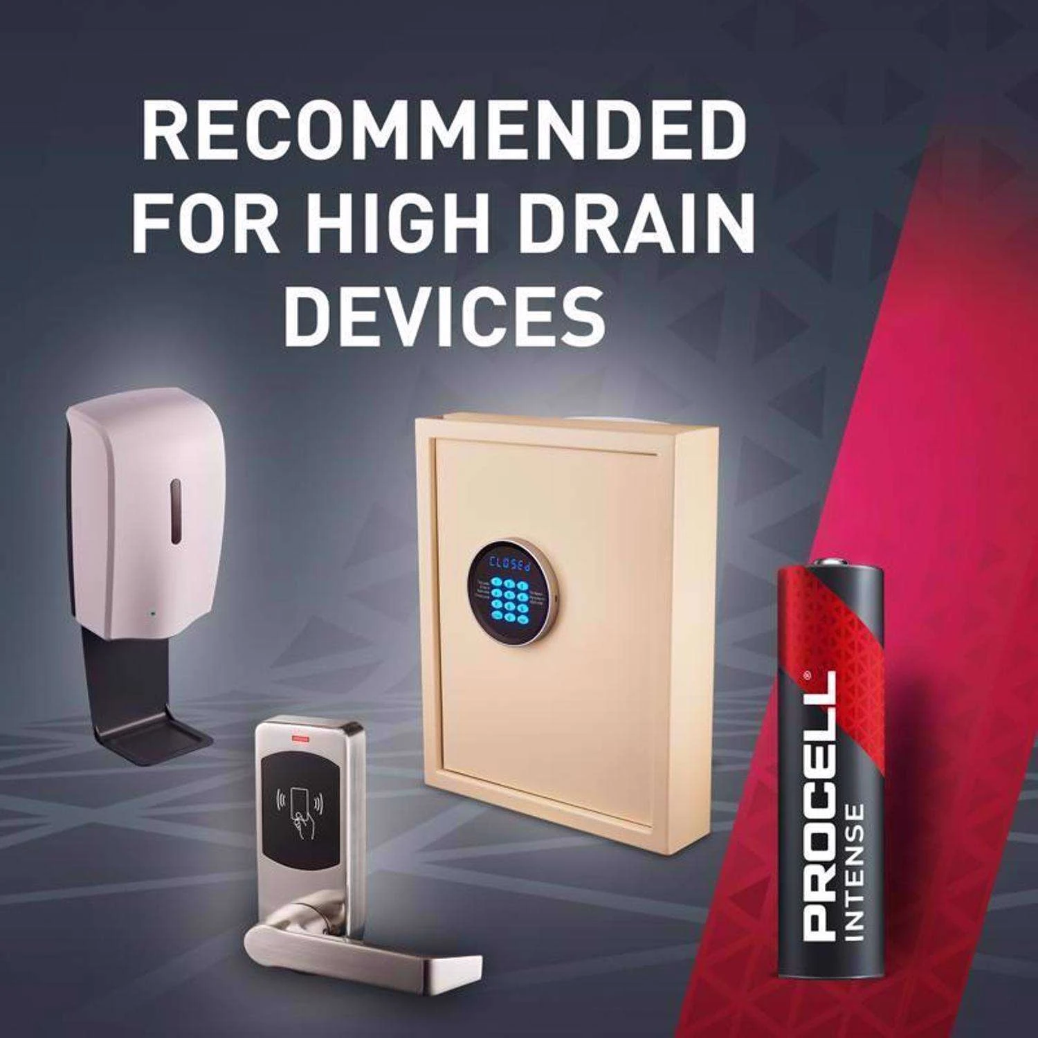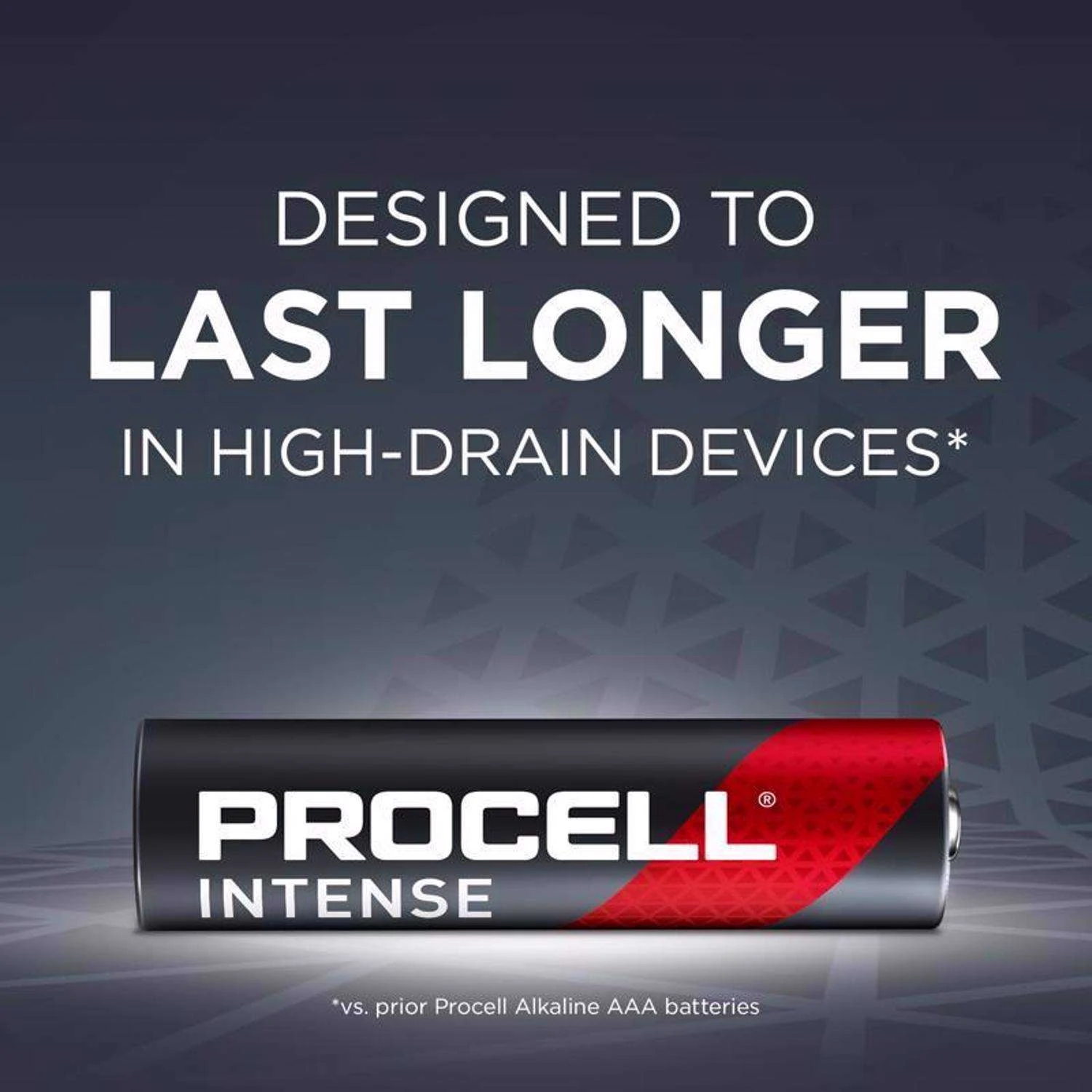Procell Alkaline Intense Power AAA industrial batteries are specifically designed to last longer (vs. prior Procell Alkaline AAA batteries) in high drain professional devices that require a high amount of power or peaks of power, such as blood Pressure monitors, soap dispensers, pulse oximeters and flashlights. Reliable performance Excellent resistance to corrosion Designed to meet all major quality, safety and environmental standards Operating temperatures from -4 degrees fahrenheit to 129.2 degrees fahrenheit