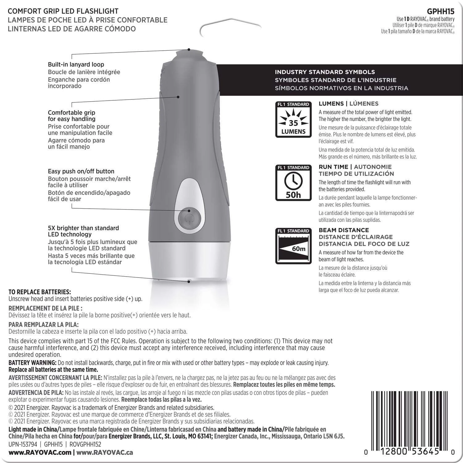 Rayovac® Rayovac Comfort Grip 35 Lm Assorted LED Flashlight D Battery