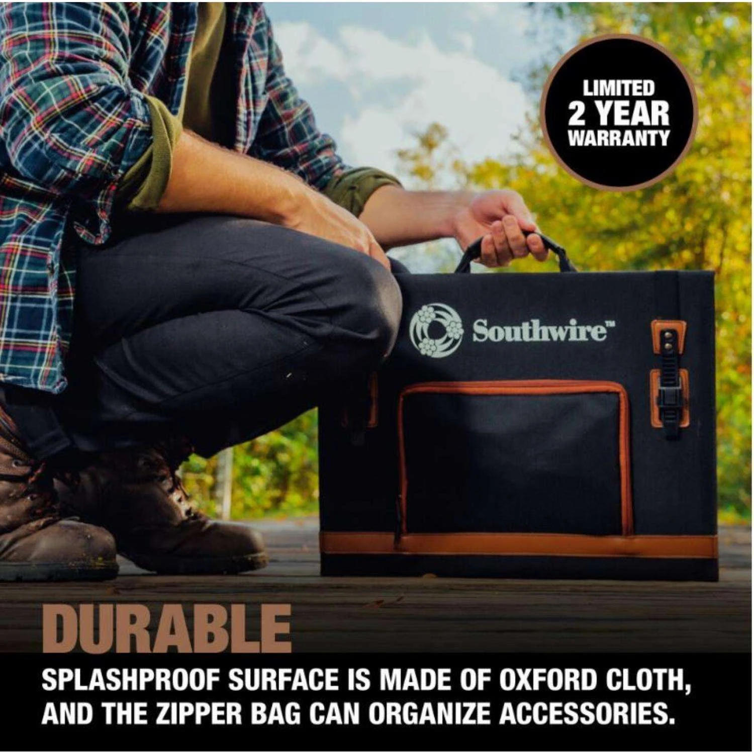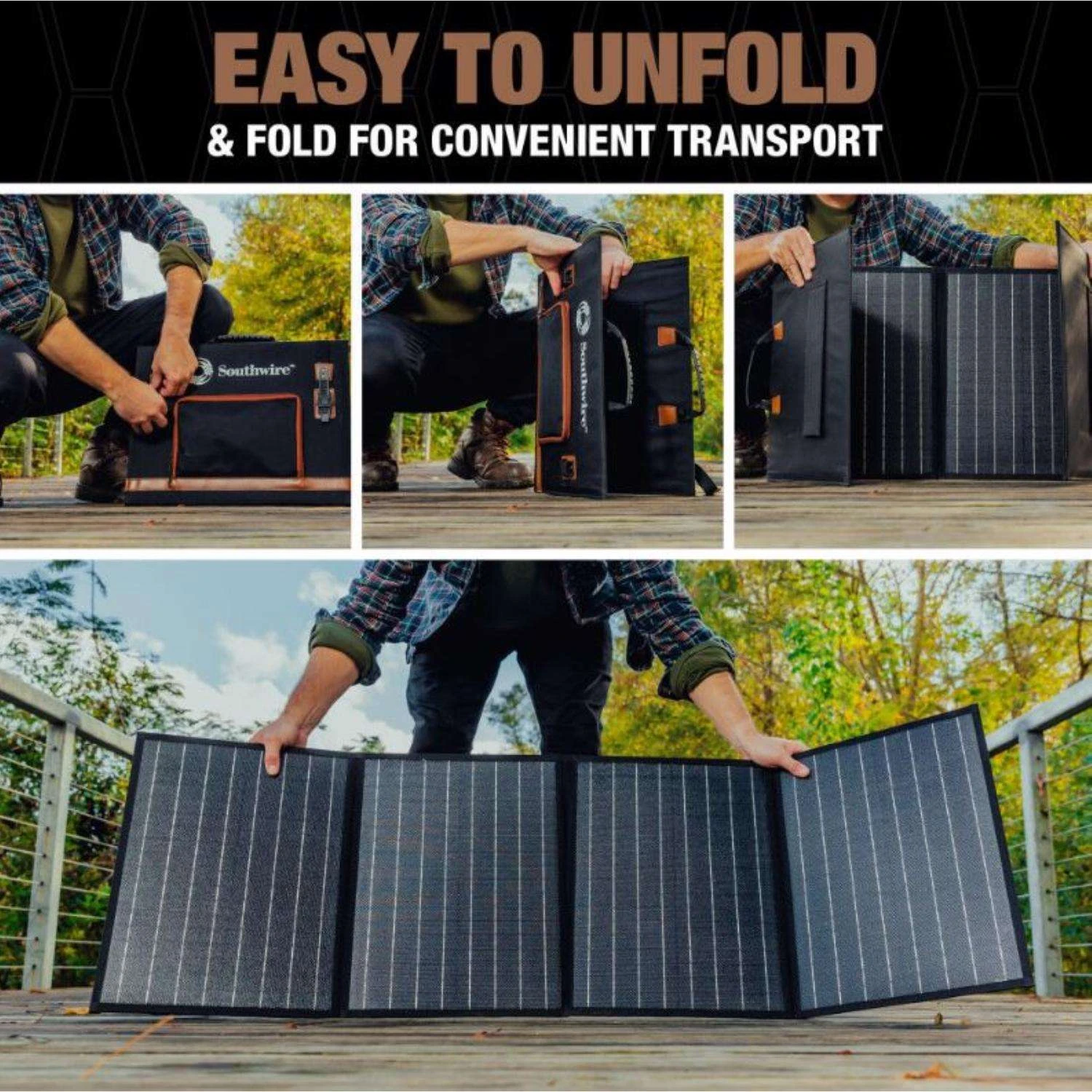 Wherever your next adventure leads you, Southwire’s Elite Series 100-Watt Solar Panel can help add power on-the-go. Enjoy the convenience of the 100-Watt solar panels that quad-fold into a light carrying case and are made of monocrystalline for more energy per square foot. You’ll always have power whenever, wherever. Suitable for camping, climbing, hiking, picnic, and other outdoor activities Monocrystalline Solar Panel – high efficiency rate means more energy per square foot Quad-fold panel folds into carrying case Lightweight, portable design The solar panels are built to last using advanced lamination technology and durable ETFE material