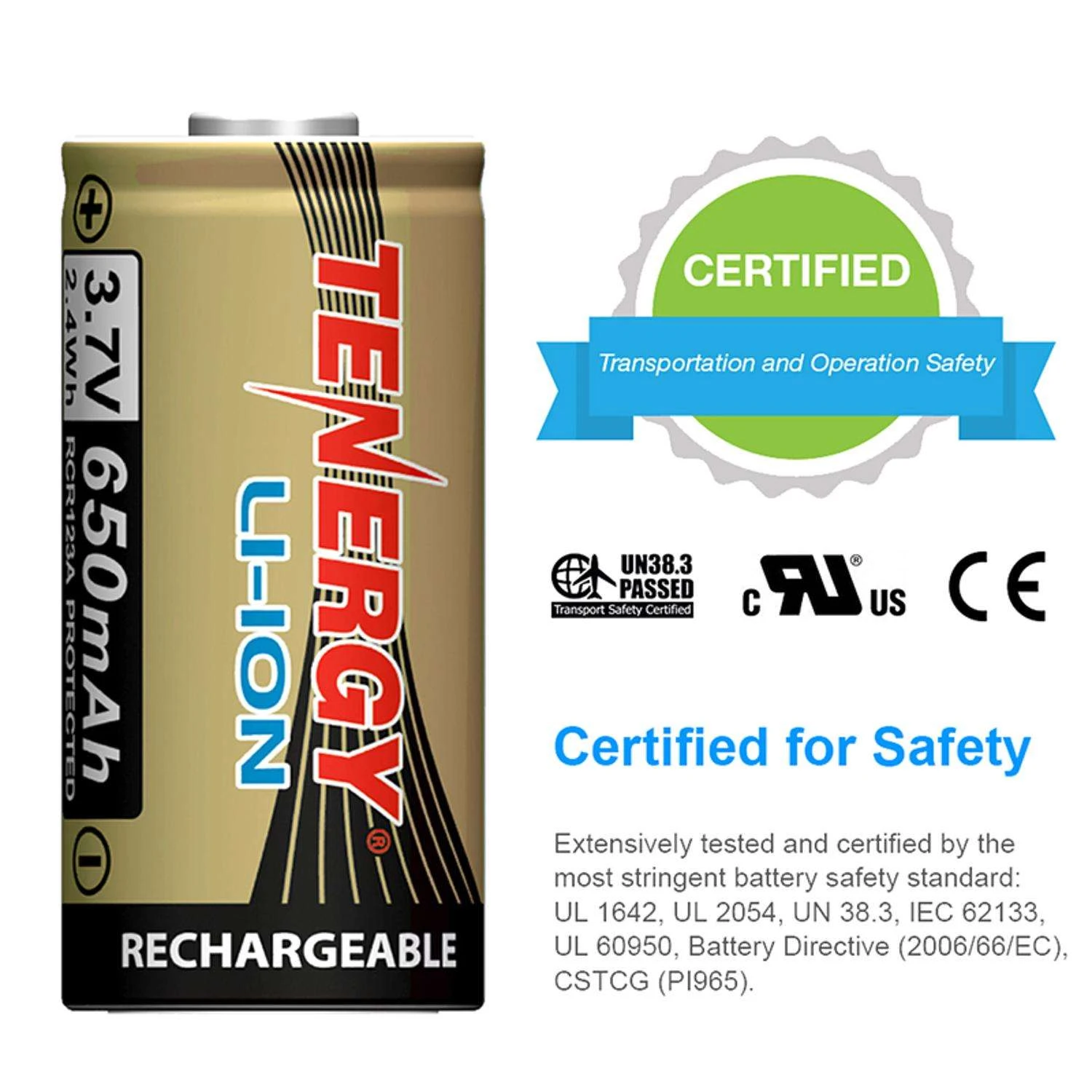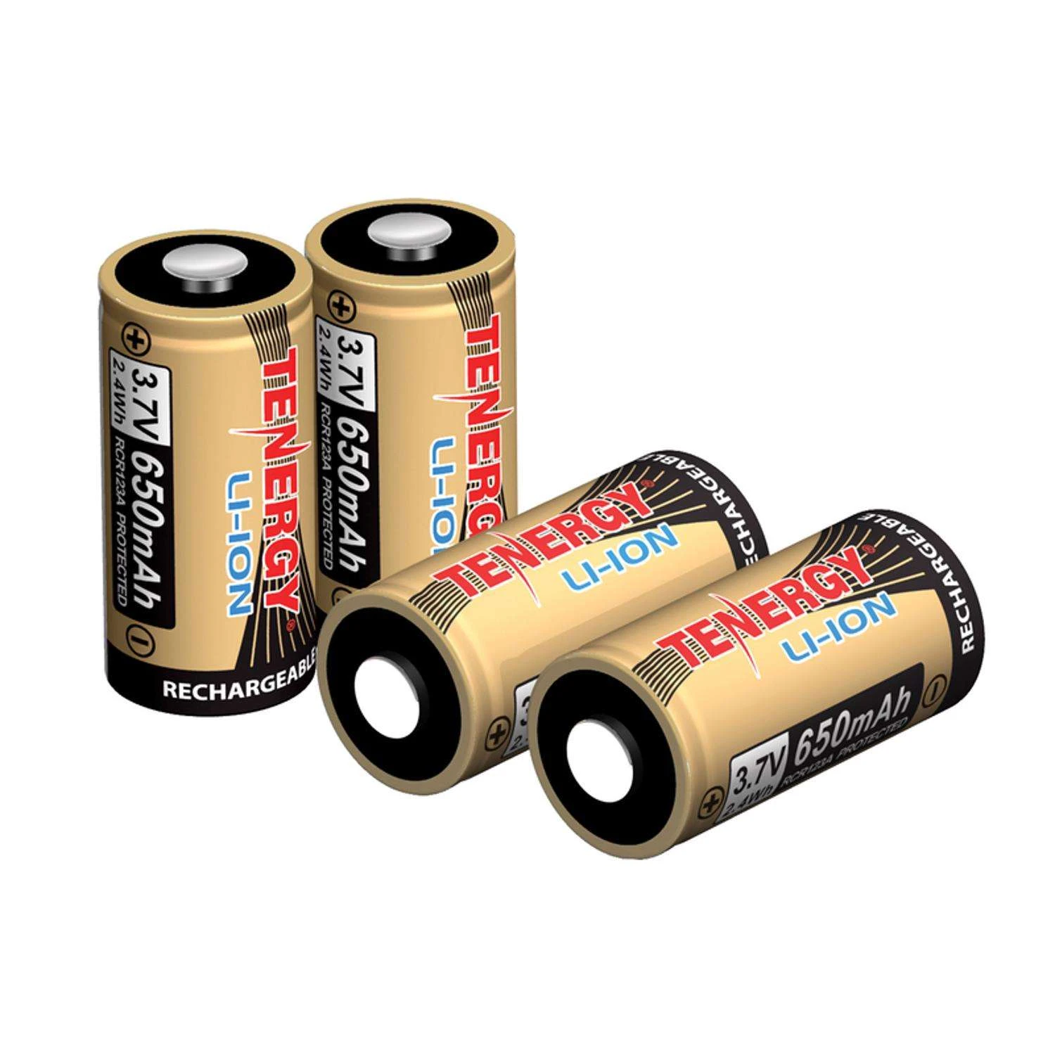 Tenergy Lithium Ion CR123A 3.7 V 0.65 Ah Rechargeable Battery 4 Pk