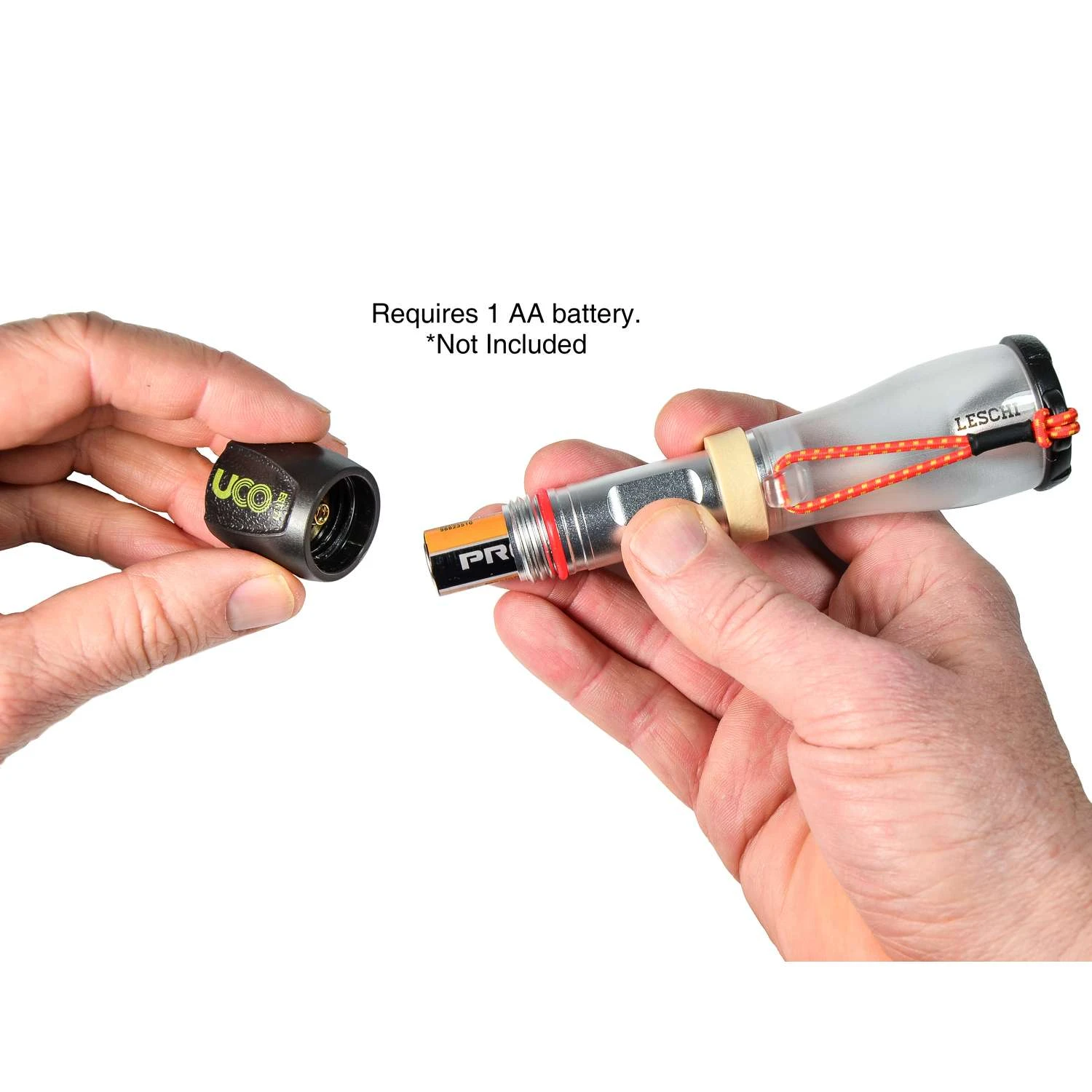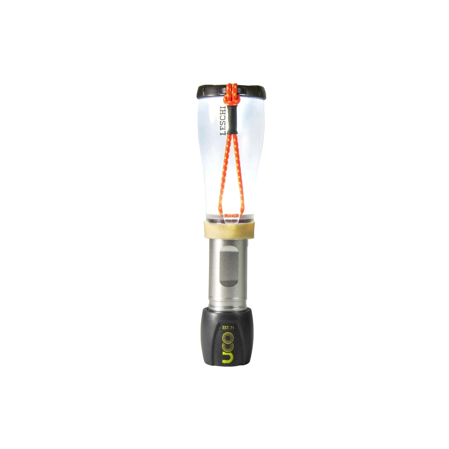 Cast a broad swath of light from almost anywhere! Pack the innovative Leschi Lantern + Flashlight when you need a versatile, lightweight, compact source of light to illuminate your adventures. The convenient, shock cord clip on the Leschi enables you to hang and focus the lantern from both horizontal and vertical surfaces. No longer limited to a pole or limb that will accept a hook or string, the Leschi Lantern + Flashlight can be lashed to a tree limb, tent pole, guy line, bar, strap or flagpole! Push the globe down to transform the lantern into a handy flashlight for reading in bed or to accompany you on late-night forays out of your tent. Offers three lighting modes, including a strobe mode. Compact, lightweight, rugged and collapsible LED lantern and flashlight provides 110 lumens of light and is highly water resistant (IPX5) Bright LED provides diffused white light in lantern mode and a bright focused light in flashlight mode; frosted globe slides to switch modes Integrated shock cord allows Leschi to mount to tree limbs, bars, straps, guy lines Light levels are adjustable from low (for conserving batteries), to bright, to strobe for emergency situations
