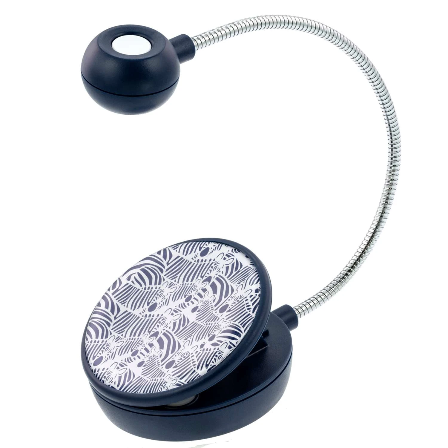 Whether you’re looking to relax in bed or snuggle on the couch in front of a fire, reading in dimly lit areas is much easier thanks to the Dabney Lee disc-shaped reading light. This book light is an exceptional and affordable choice for students, businesses or anyone who enjoys reading paperback or hardback books. This reading light has two LEDs which provide superior illumination plus brightness settings which can be controlled with unique, full-range dimming. The disc book reading light is flexible and can be manipulated in multiple directions for ease of use and full-page illumination. It is available in several Dabney Lee designs and will secure easily to e-readers and books, thanks to an easy-to-attach clip. The unique shape of the light allows direct illumination on pages or the e-reader screen and produces less glare than standard light bulb reading lights. It also makes it much easier to read for extended periods of time and places less strain on the eyes. This reading light is engineered to last a long time while being an incredibly cost-effective solution for those who are looking for a portable reading light. Easy to secure the WITHit charge LED book light clip on is designed to fasten to books and ebook units easily and securely so you can comfortably read in bed, on the couch or anywhere else you like to curl up with a good book Flexible neck design the light emitted from this reading book light fully illuminates the book pages and screen thanks to the flexible neck design, the head also swivels around and clips into the clamp, so it’s stays protected while not in use Brightness setting the expert design and shape of this lightweight reading light includes 2 bright LEDs that can be directed anywhere needed with reduced glare, Plus, you can control the brightness with unique, full-range dimming The WITHit LED book light for reading comes with 2 lithium coin cell batteries Portable and lightweight WITHit portable reading light is compact and can be conveniently stored in travel cases, backpacks, purses and carry-on bags