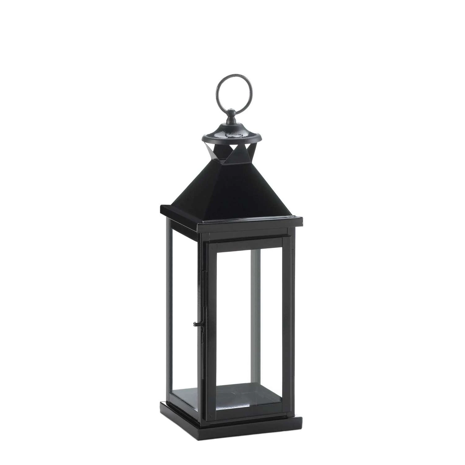 Create a modern candlelight display with this large metal and glass candle lantern. The lantern features a traditional frame with a square base, glass window panes and a contemporary galvanized metal top. Finished with a metal ring for easy hanging, this decorative metal lantern will make your space look cozy and chic. Place on an end table, coffee table or a cabinet, mix with other chic decor for a polished finish. Add a flameless candle for a gentle, warm glow. Beautifully crafted lantern made of iron and glass To clean your lighting decor; dust lightly or wipe with damp cloth as needed Lanterns are a great way to add personality and soft ambiance to any space Create a beautiful centerpiece for a dinning table or display on another surface for a finished, chic look